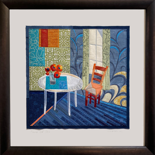 Flowers and Chair, 26.5 x 26.5 x 1.5" framed