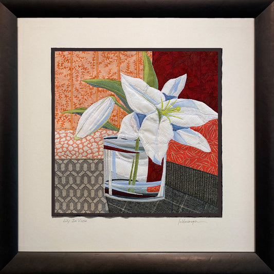 Lily In Vase, 22.5 x 22.5 x 1.5" framed
